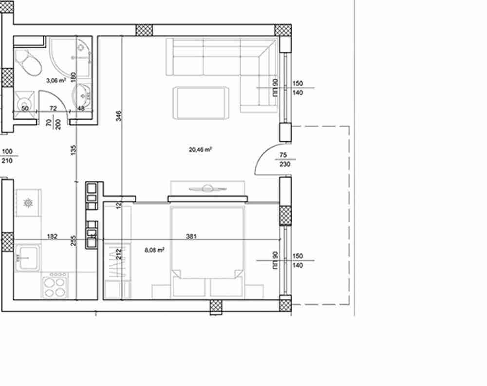 Малък двустаен апартамент, разположен на партерен етаж в новострояща се жилищна сграда в кв. Черно море, гр. Несебър.