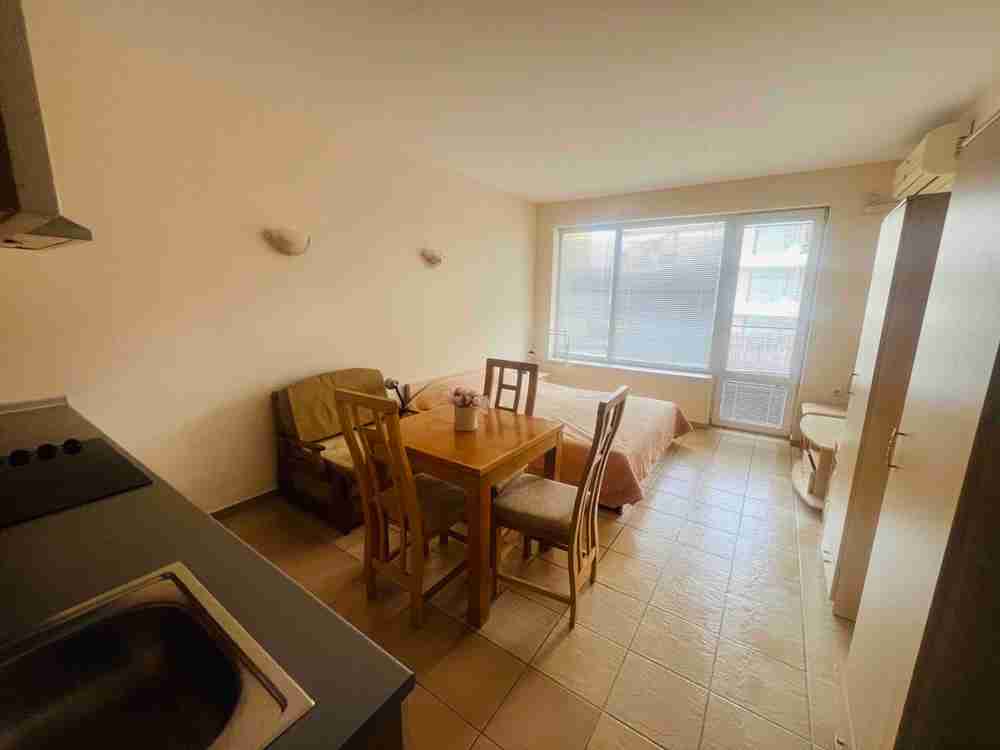 Просторно студио, разположено на пети етаж в жилищен комплекс ”Блумарин”, намиращ се в юго-източната част на к.к. Слънчев бряг, само на 100 м. от плажа.